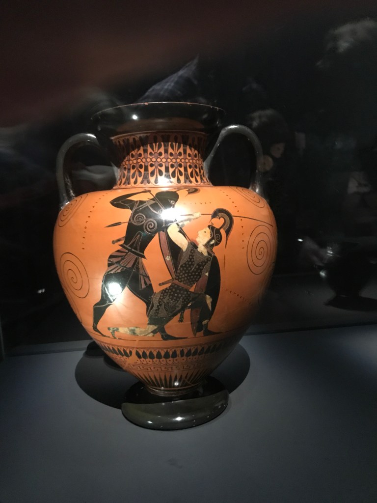 The exhibition then tells the tale of the great battles between Troy and the Greeks. Many stories of different characters get brought to the forefront of the exhibition, but one mention that stood out was the mention of potential homosexual relationships. On a sarcophagus we see Achilles grief-striken as his friends bring him the dead body of Patroclus, his closest friend and probably lover. Achilles takes out his revenge soon enough and eventually gets wounded, which, a prophecy once foretold, meant that death was soon to come.